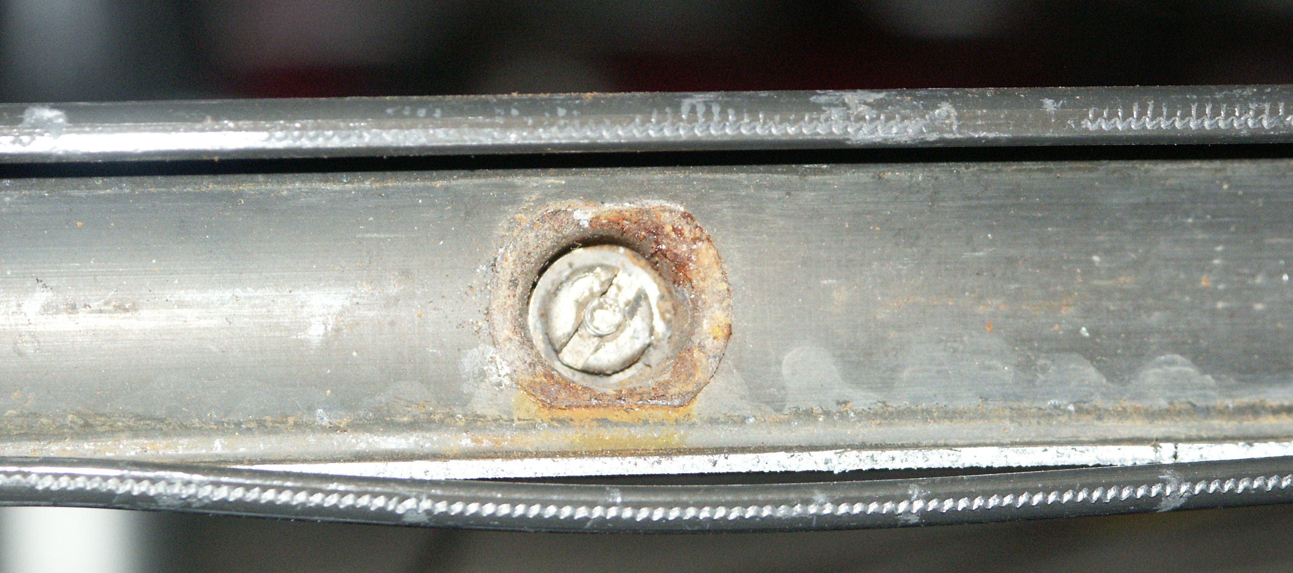 Vorgestern (2009-06-03) bemerkte ich ein leichtes Rubbeln beim Bremsen mit der Hinterradbremse. Gestern drückte ich noch ein wenig Luft in den Reifen, weil ich das Gefühl hatte fit zu sein und Chance sah die 24,36km Arbeitsweg (260 Hm) in unter 1h zu schaffen. Beim Bremsen, an der Ampel war es wieder da das rubbeln in der Hinterradbremse, etwas doller. 1 km weiter, grad wieder auf > 50 km/h beschleunigt, rubbelt es hinten, aber ohne Betätigung der Bremse. "Schau besser mal nach..." dachte ich mir so...